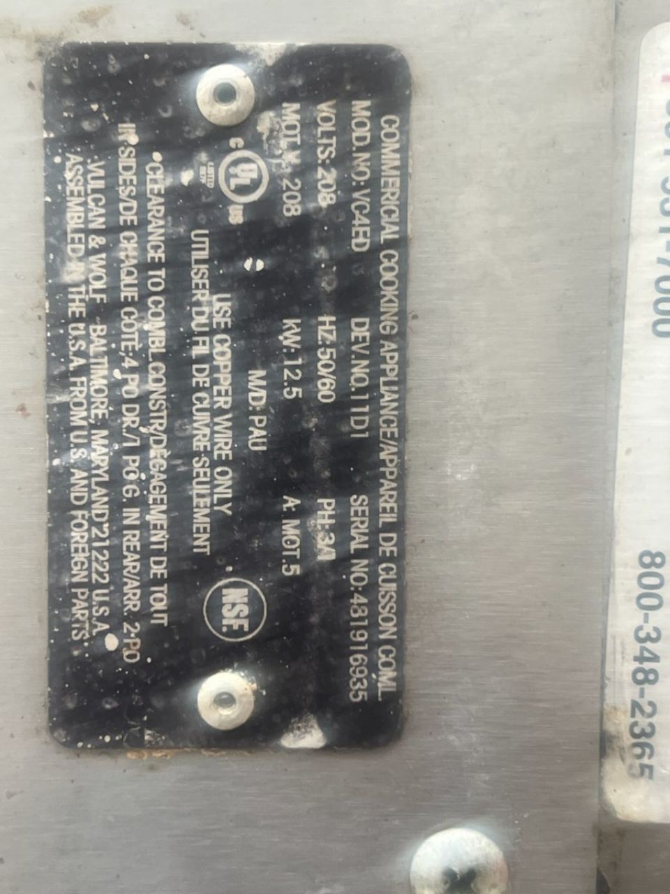 Natural Gas Oven Vulcan