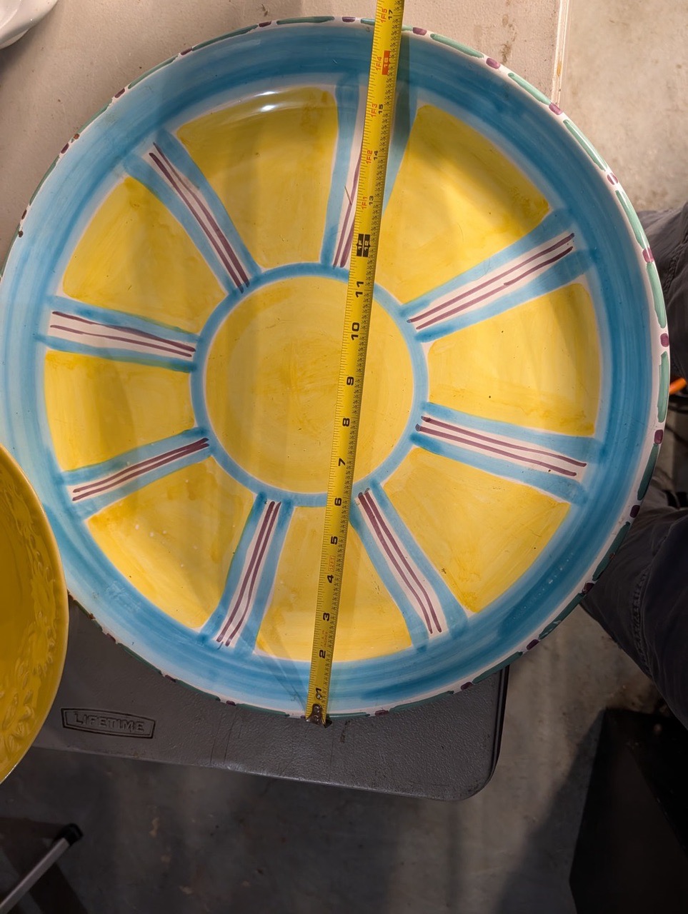 The platter is generously sized (approximately 17 inches in diameter, see photos with tape measure) and has a smooth glazed finish. Ideal for restaurants, catering, events, or home entertaining.