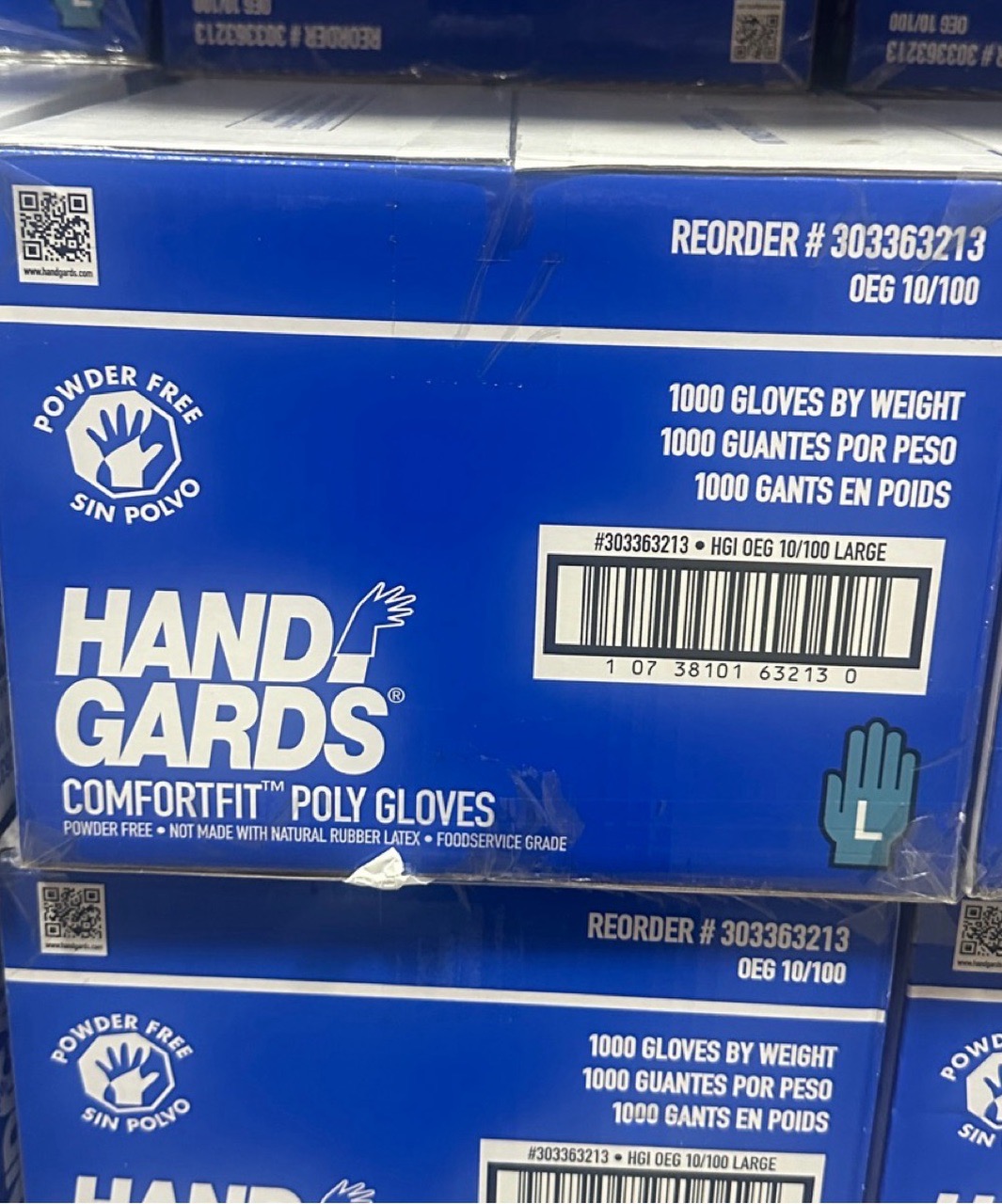Handgards ComfortFit Poly Gloves are powder-free, foodservice grade gloves made without natural rubber latex. This pack contains 1000 gloves by weight.