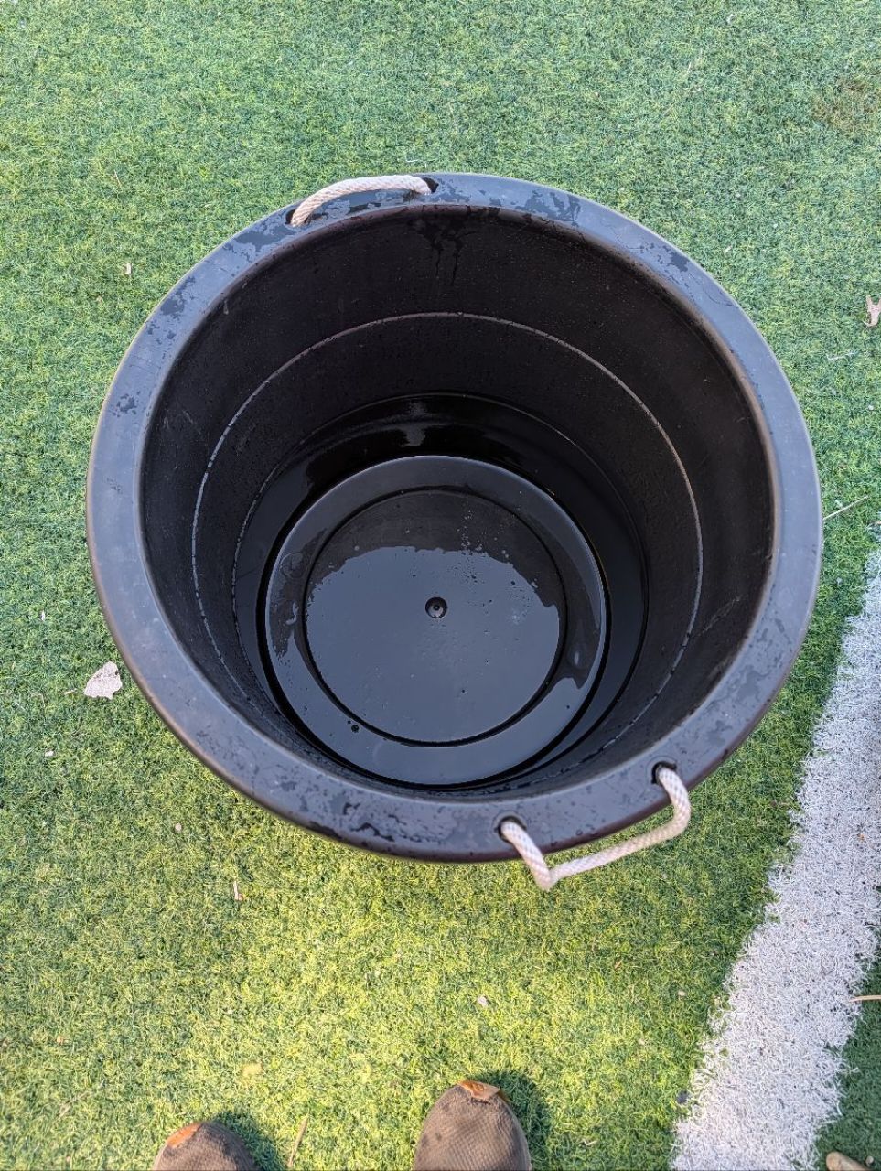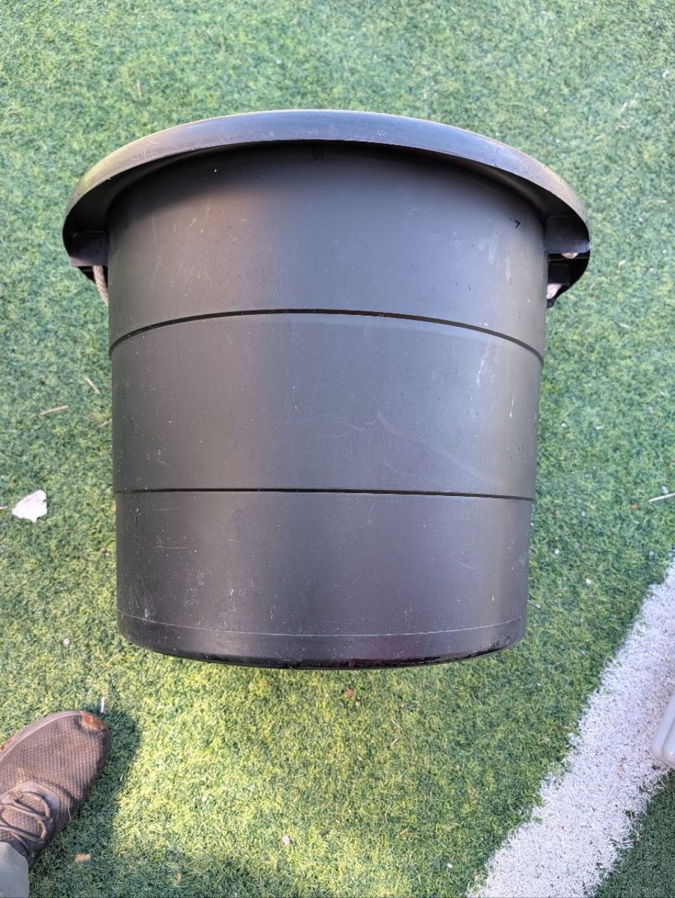Rope handles big black tub to store ice and drinks. Or flowers if you want.