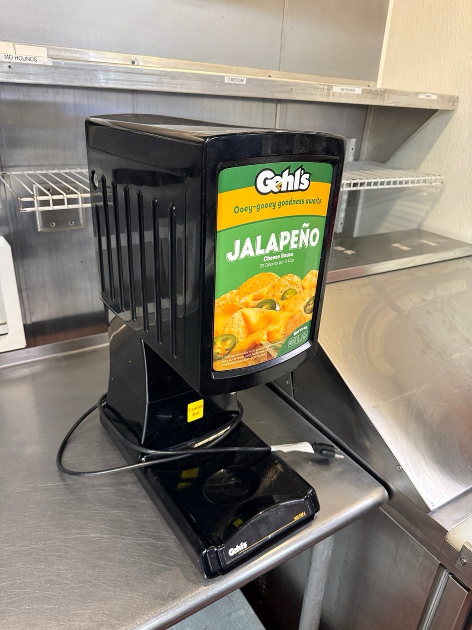 A convenient kitchen appliance for dispensing liquid cheese. Uses Gehls cheese bags. Accessories included.